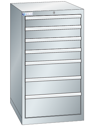 7、B-1071車(chē)間用重型單導(dǎo)軌工具柜每只抽屜設(shè)有安全鎖扣,可防止抽屜意外滑出;