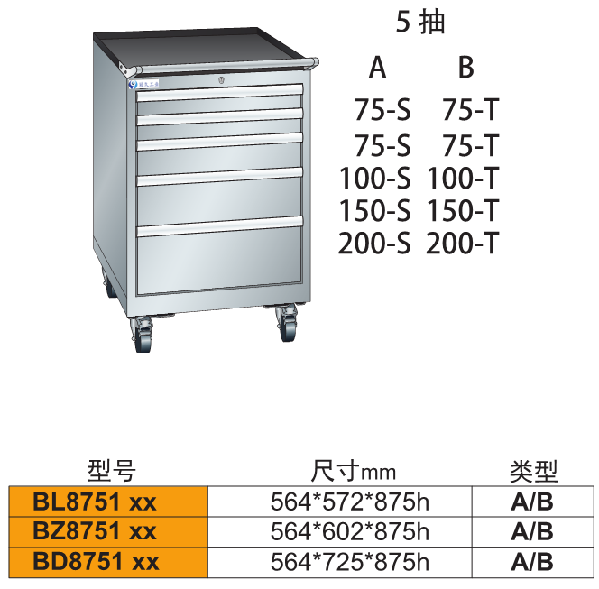 2、由各種型號的工具柜增加頂柜和腳輪等移動部件組成。
