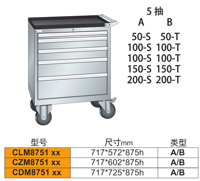 3、外型尺寸的高度:重型工具車為所選用的工具柜的高度加上140mm;