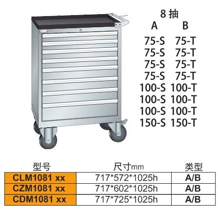 2、由各種型號(hào)的工具柜增加頂柜和腳輪等移動(dòng)部件組成。