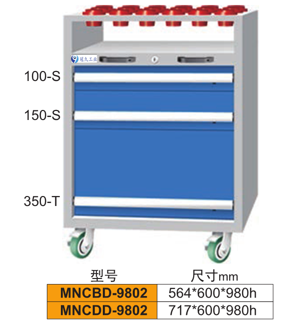 刀具車是存放、搬運刀具的裝備,此類刀具車可存BT30、BT40、BT50、HSK63、HSK100等多種型號的刀具。多邊成型的整體式側(cè)板上有模數(shù)化的人字孔,可將刀座按水平或15°、30°傾斜放置,方便多種刀具的存取。 高強度腳輪,車前為兩個定向輪,車后為兩個萬向帶 剎車輪,推行平穩(wěn),方向性好,剎車固定后不會滑動。