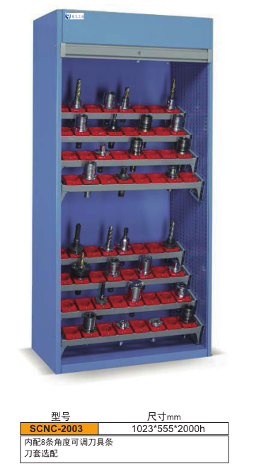 刀具柜,是專門用來存放各種車床上常用刀具的柜子。刀具柜的柜體一般采用冷軋鋼板制成,堅(jiān)固耐用。刀具柜內(nèi)常有3-5個(gè)橫檔可拉抽屜,抽屜內(nèi)有ABS材質(zhì)的刀具套,防滑防油,以便刀具自由組合式的存放。刀具柜一般都為雙門對(duì)開式,柜體裝有可調(diào)式腳墊,柜體可調(diào)整高度,柜子防滑防潮。刀具柜常用在工廠機(jī)加工中心,便于刀具的集中管理,取用方便。