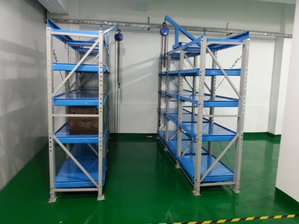 模具貨架又稱模具架或抽屜式貨架,主要存放各種模具物品,根據(jù)層載能力要求分為輕型模具貨架和重型模具貨架。貨架頂部可配置移動(dòng)葫蘆車,以方便模具的起吊。