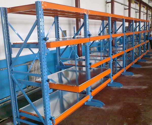 模具貨架又稱模具架或抽屜式貨架,主要存放各種模具物品,根據(jù)層載能力要求分為輕型模具貨架和重型模具貨架。貨架頂部可配置移動葫蘆車,以方便模具的起吊。