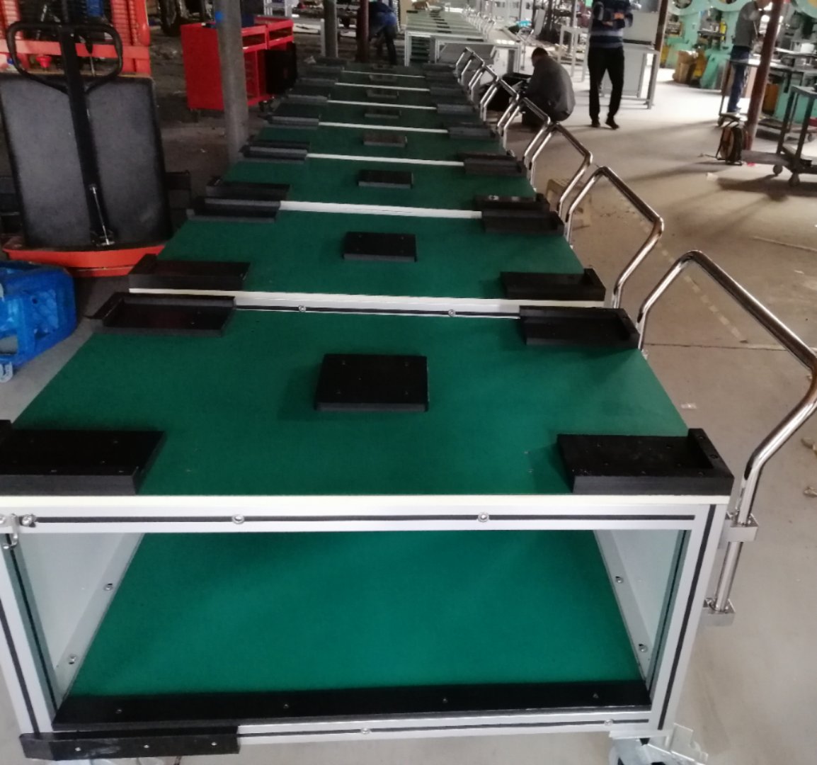 宇通客車pack線手推車定制項(xiàng)目是根據(jù)用戶要求研制的,該產(chǎn)品配備防靜電臺(tái)面板,pvc基板,防靜電,定位塊,防靜電腳輪,不是一臺(tái)手推車,是一個(gè)可移動(dòng)的檢測(cè)工作臺(tái)。配備了8寸防靜電腳輪靜音腳輪,推動(dòng)起來(lái)更省力。降低了人力成本.防靜電手推車,工作臺(tái)選冠久