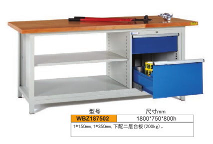工作臺介紹: 工作臺采用優(yōu)質(zhì)冷扎板精工制作而成,堅固的工作桌框架,牢固平穩(wěn),可使工作桌承重1000kg;多種工作桌面選擇,可配合不工使用的要求; 工具吊柜(箱),側(cè)柜(箱)燈架,調(diào)節(jié)腳杯,外形美觀;層板,抽屜質(zhì)量上乘,承重大,抽屜內(nèi)可根據(jù)需要任意分隔;節(jié)約空間,適用性強
